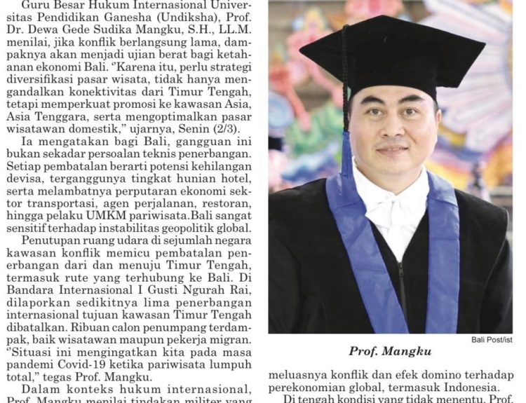Konflik Timur Tengah Ancam Pariwisata Bali, Akademisi Undiksha Sebut AS dan Israel Langgar Hukum Internasional