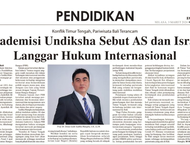 Guru Besar Hukum Internasional Universitas Pendidikan Ganesha (Undiksha) Singaraja, Prof. Dr. Dewa Gede Sudika Mangku, S.H., LL.M. menangapi gejolak...