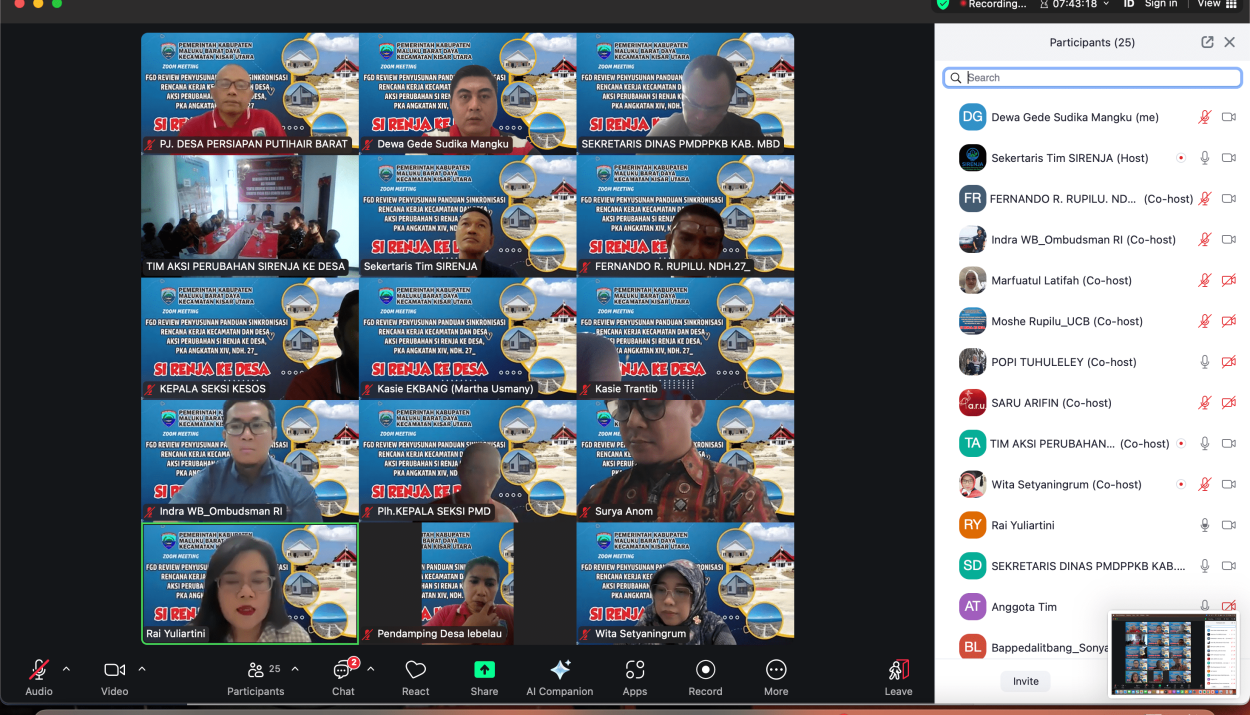Adapun masukan yang disampaikan oleh Dr. Ni Putu Rai Yuliartini, S.H., M.H. sebagai berikut : Dari sisi tata kelola pemerintahan, SI RENJA KE DESA adalah wujud implementasi prinsip good governance: partisipatif, transparan, akuntabel, dan efektif. Kehadiran Tim Sinkronisasi yang inklusif, forum deliberatif (Musrenbang Kecamatan), serta mekanisme evaluasi rutin menunjukkan adanya niat membangun tata kelola yang lebih demokratis