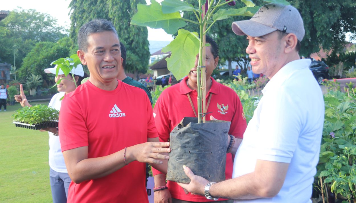 Wakil Bupati Buleleng, Gede Supriatna, SH optimis program pembagian bibit tanaman jenis sayuran pada musim penghujan mampu menekan laju inflasi di Buleleng. Hal itu dinilai sangat strategis mengingat pengalaman tahun-tahun sebelumnya dimana harga komiditi sayuran naik dratis saat musim penghujan. Terkait itu, pihaknya mendukung penuh pembagian ribuan bibit tanaman jenis sayuran itu kepada seluruh OPD Lingkup Pemkab Buleleng. Demikian terungkap dalam Penyerahan Bibit Cabai dan Terong pada Apel Krida di Taman Kota Singaraja, Jumat, (5/12).